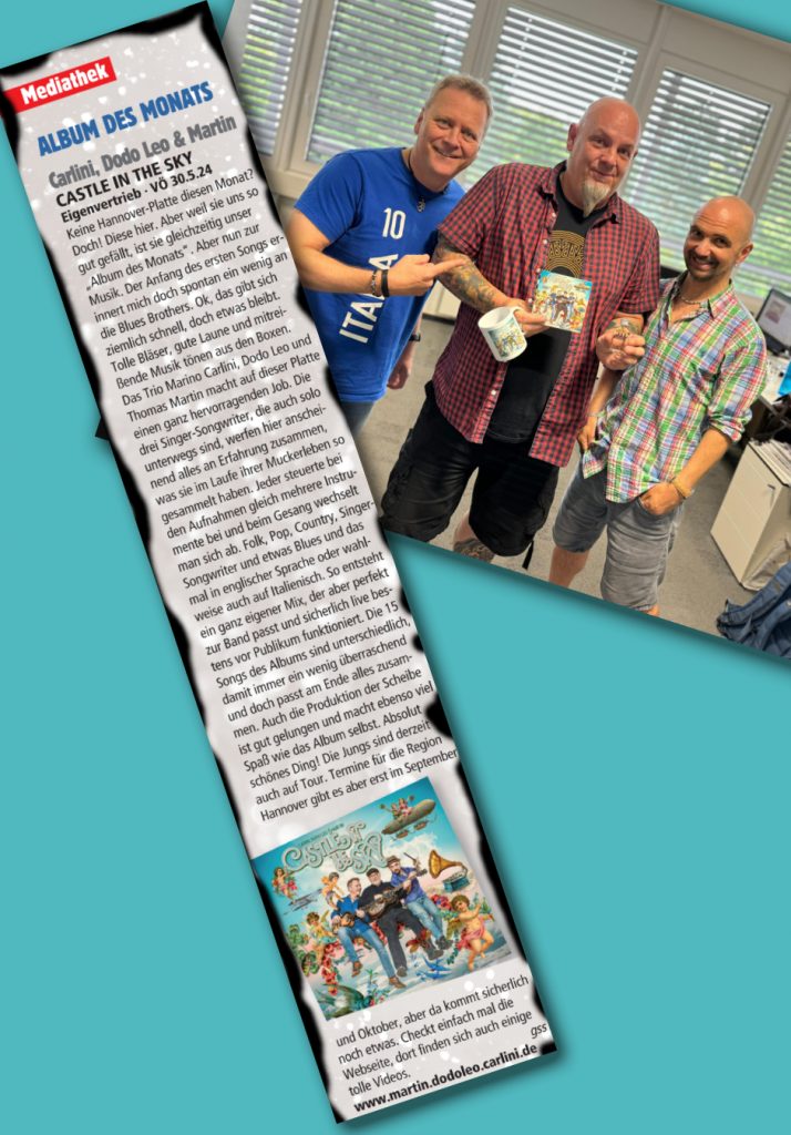 Nach den üblichen Preisen und Ehrungen für Castle In The Sky, wie das goldene Ofenrohr, die lyrische Heulboje oder dem Kulturpreis Kimratshofen – nicht zu vergessen, den völlig zu Recht zu erwartenden Nobelpreis – sind wir ergriffen und erquickt über diese pfundige Ehre und der äußerst feinsinnigen Rezension und bedanken uns aufs herzlichste.
